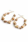 Ikarave Beige Shell Hoop Earrings for Women Lightweight Statement Jewelry Handmade Seashell Beaded Design Party Wedding Beach Boho Fashion Earrings for Girls Trendy Designer Gift