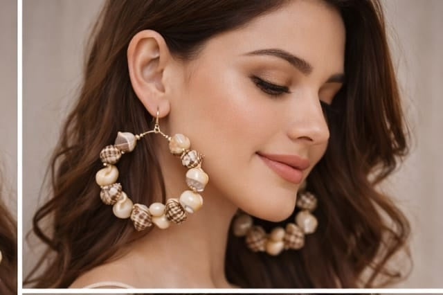 | Ikarave Beige Shell Hoop Earrings are created for women who love stylish elegant and trendy fashion jewelry. These earrings are handcrafted using premium quality beige shell beads arranged in a beautiful hoop pattern that delivers a classy and luxurious appearance. The soft neutral shade makes them versatile and easy to match with both traditional and western outfits giving you complete styling freedom. |