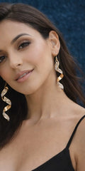 | IKARAVE Gold Crystal and Silver Dangle Earrings are designed for women who love elegance sparkle and statement fashion jewelry. These stunning earrings feature a beautiful spiral design with shimmering crystal stones set in a premium gold and silver finish that adds luxury and charm to every look. The combination of gold crystal and silver tone creates a sophisticated appeal that perfectly suits both modern and traditional styling. |