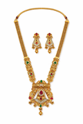 Ikarave Gold Plated Antique Temple Jewelry Set with Traditional Long Necklace and Matching Earrings for Women, Bridal Wedding Party Wear Ethnic Fashion Accessories for Festive and Special Occasions
