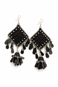 IKARAVE Matte Black and Silver Thread Work Dangle Earrings for Women Boho Statement Designer Jewelry Lightweight Handmade Party Wear Wedding Fashion Earrings for Girls Trendy Gift