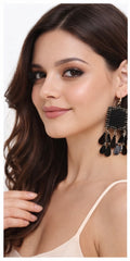 | IKARAVE Matte Black and Silver Thread Work Dangle Earrings are created for women who love bold modern and statement fashion jewelry. These earrings feature a beautiful handwoven matte black thread work base highlighted with shiny silver detailing and dangling elements that give a powerful and stylish look. The contrast of deep black with bright silver adds a classy and contemporary appeal making these earrings perfect for both casual and party wear styling. |