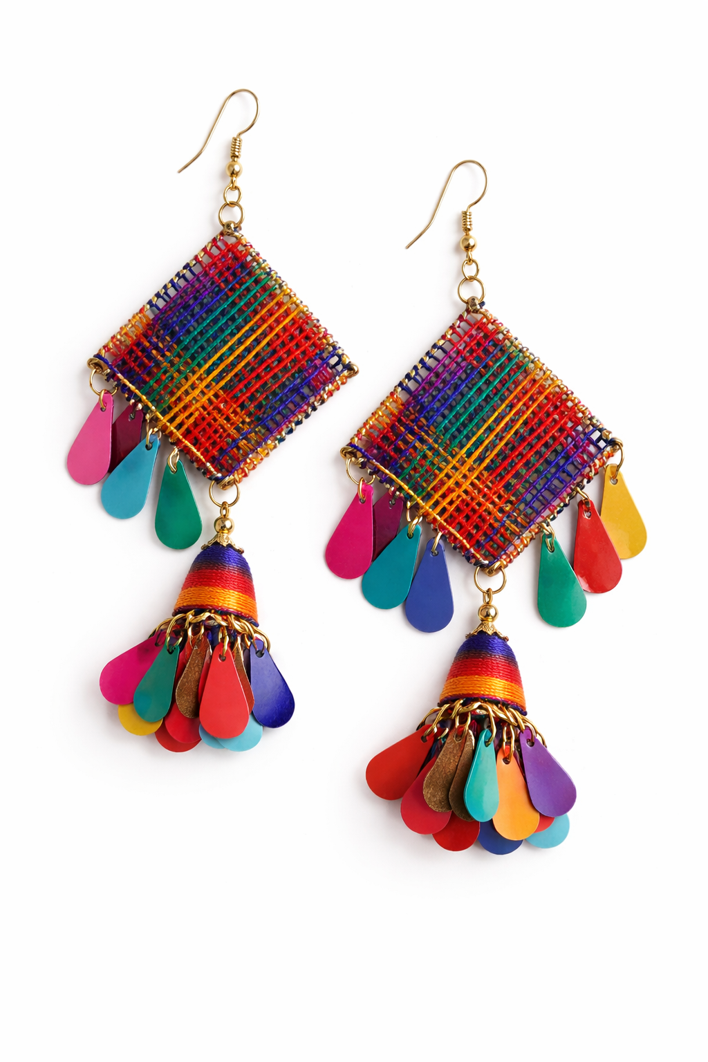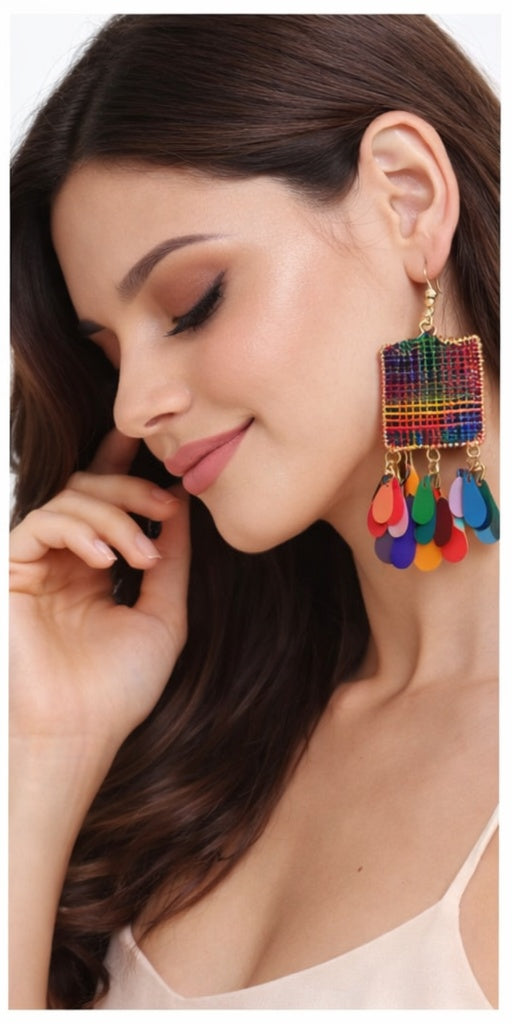 | IKARAVE Multicolor Thread Work Dangle Earrings are designed for women who love bold colors artistic designs and statement fashion jewelry. These earrings feature beautiful handwoven multicolor thread work in a square pattern paired with colorful tassel drops that create a vibrant and eye catching look. The rainbow shades bring energy and freshness to your style making these earrings perfect for modern boho and fusion fashion. |