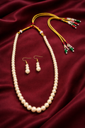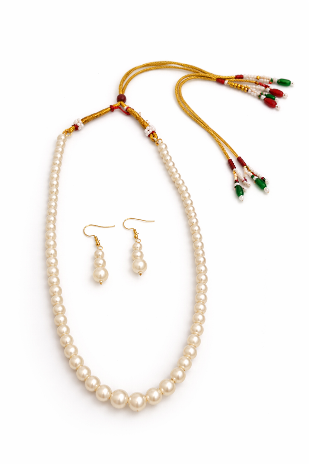 Ikarave Pearl Beaded Neckpiece Set with Adjustable Dori and Matching Drop Earrings for Women, Traditional Wedding Party Wear Ethnic Jewelry for Bridal and Festive Occasions
