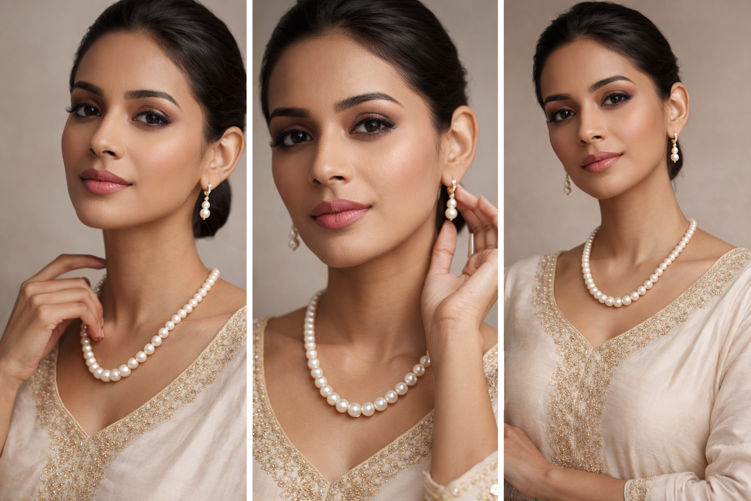| The Ikarave Pearl Beaded Neckpiece Set is a perfect blend of simplicity, tradition, and elegance. Designed for women who love classic pearl jewelry, this set includes a beautifully crafted single strand pearl neckpiece along with a pair of matching drop earrings. The smooth and glossy faux pearls add a graceful charm that enhances both traditional and modern ethnic looks. |