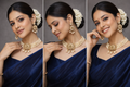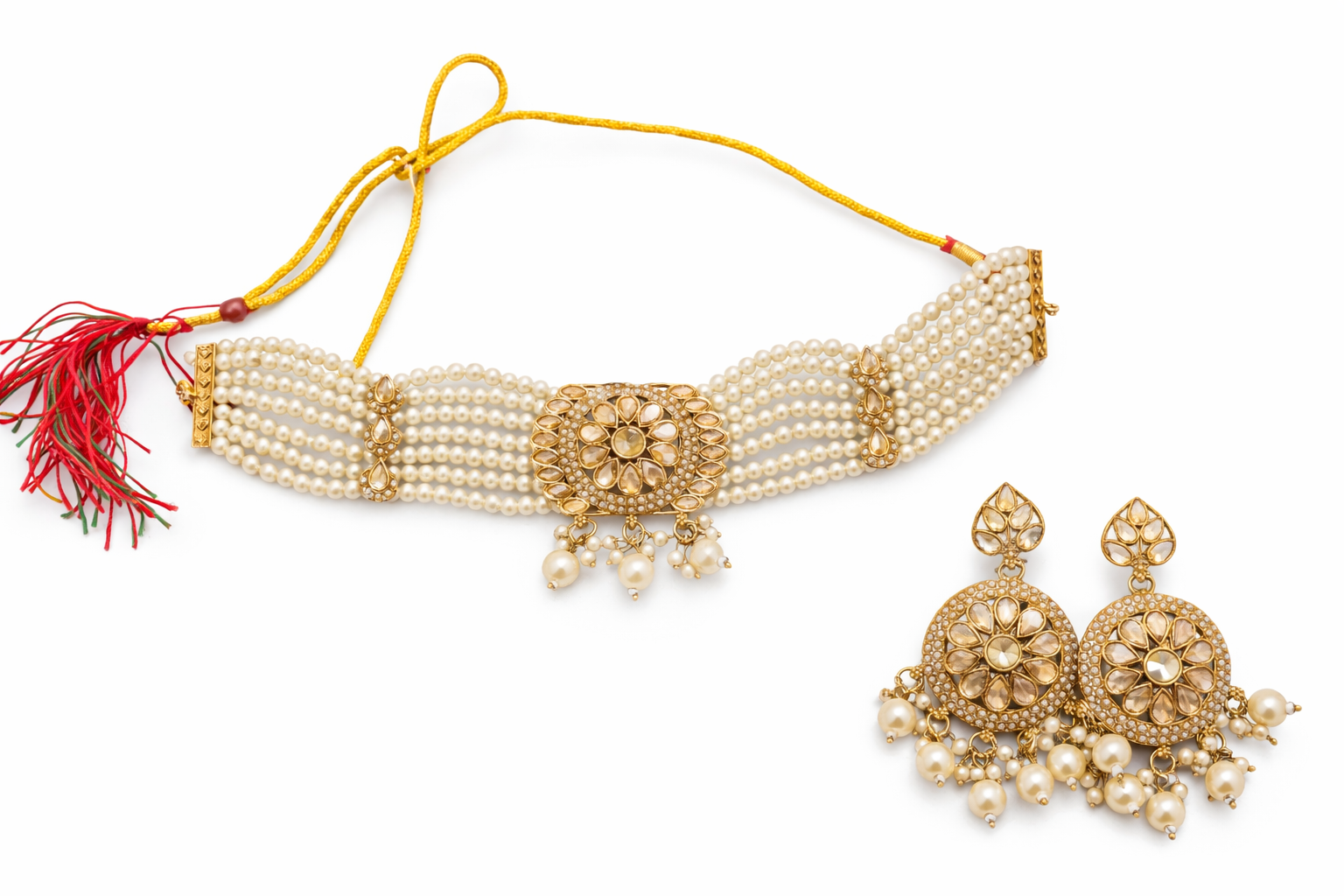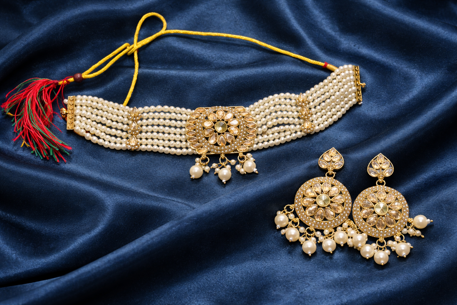 | The Ikarave Pearl Choker Kundan Jewelry Set is a stunning blend of tradition, elegance and luxury. Designed with multiple layers of high quality pearls and a beautifully detailed kundan centerpiece, this choker set adds a royal charm to any ethnic outfit. The gold plated finish enhances its rich appearance, making it ideal for weddings, bridal functions, receptions, festivals and cultural celebrations. |