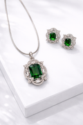IKARAVE Royal Emerald Green Crystal Pendant Necklace with Stud Earrings Set