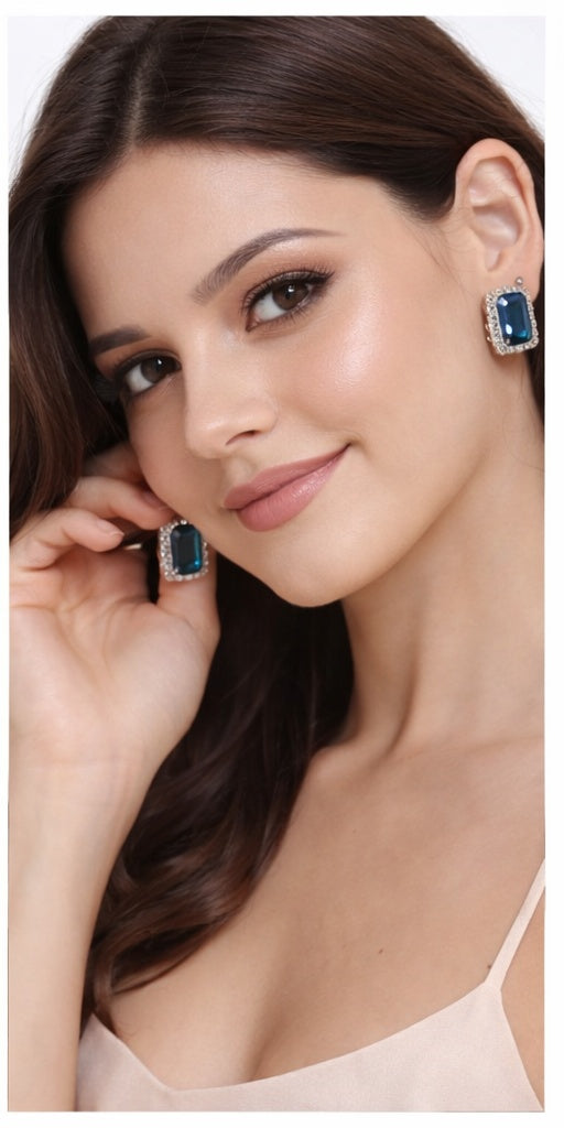 | IKARAVE Silver Blue Crystal Stud Earrings are designed for women who love luxury elegance and modern fashion. These earings feature a stunning square cut blue CZ stone that reflects brilliance and depth surrounded by sparkling cubic zirconia detailing that enhances their premium look. The silver tone metal finish adds durability and a polished shine that makes these earings perfect for party wear weddings and festive occasions. |